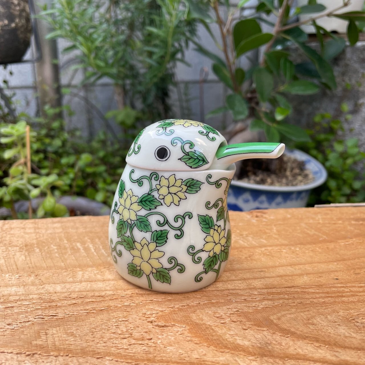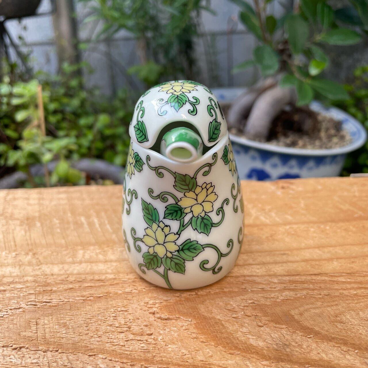 かわいい唐草柄のカワセミの汁次(醤油差し)です。
